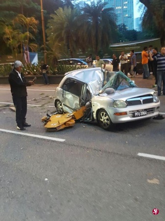 中國僑網8月29日電 據新加坡《聯合早報》報道,馬來西亞首都吉隆坡發生罕見交通意外。市中心一個建筑工地的起重機吊鉤不知何故脫落,從20樓高的地方墜下,擊中一輛路過的轎車,造成24歲華族女司機當場斃命。
