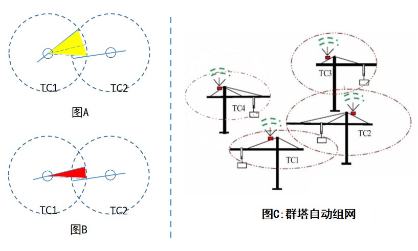 群塔自動(dòng)識(shí)別、自動(dòng)組網(wǎng)實(shí)時(shí)信息互聯(lián),防止碰撞事故。